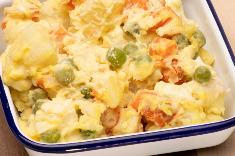 A delicious fresh chicken salad, with carrots, peas & potato, mayo, mustard, salt, spices. 2 lb container, serve 6-8.